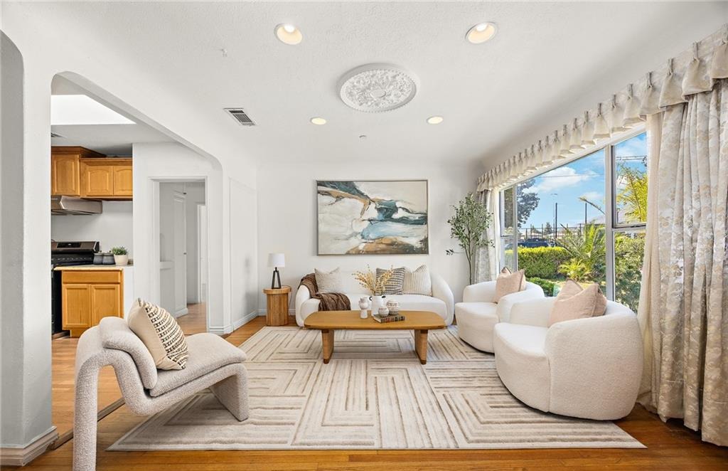 Located in the highly desirable Arcadia Unified School District, this versatile property offers approximately 2,354 square feet of total living space and features two separate units connected by an interior door, providing flexibility for a variety of living arrangements. The front unit, accessed through the main entrance, offers approximately 1,400 square feet and includes 3 bedrooms and 2 bathrooms, along with a formal living room adjacent to a wet bar with granite countertops. The home is enhanced by solid oak wood flooring throughout, adding warmth and timeless elegance. The rear unit, with its own private back entrance, was newly built in 2004 with full permits and spans approximately 954 square feet. This unit features 2 bedrooms, 2 bathrooms, a kitchen, and a comfortable living room, making it ideal for extended family members, guests, or rental income. This unique layout makes the property perfect for two separate families, multi-generational living, or investment purposes. Conveniently located within walking distance to shcools, as well as nearby shopping and Metro Station, the home offers both comfort and accessibility in one of Arcadia’s most sought-after neighborhoods. A rare opportunity combining top-rated schools, flexible living space, and excellent location.