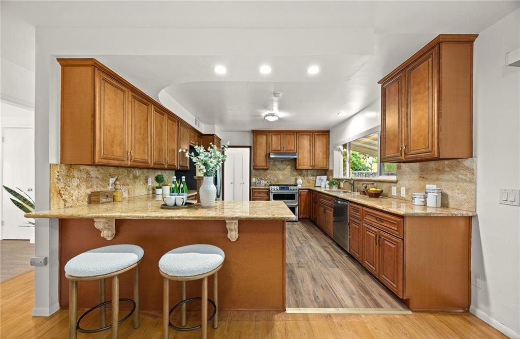 (Wide Frontage Of 131 x Depth 122 FT) A charming single-family home built in 1957,fantastic open floor plan offering a blend of classic design and modern comfort. The home boasts a Craftsman architectural style, characterized by its attention to detail and quality craftsmanship. Upgraded in 2015. including new Double pane windows,, New Garage Door, pristine Hardwood floors, Recently Fresh new paint interior, and much much more! Lovely cute covered patio was built along the rear of home, Kitchen was totally remodeled with new Stainless steel appliances, luxurious counter tops and premium quality cabinets. Family room features a lovely fireplace. Situated in a tranquil neighborhood, the property offers a wide backyard with a patio area, perfect for outdoor gatherings and relaxation. The location provides easy access to local amenities, schools, and parks, making it an ideal choice for families.